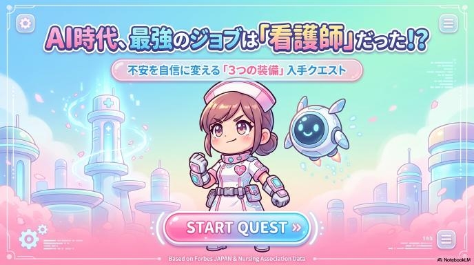「看護師の仕事はAIに奪われるのかな…」 「勉強についてもいけるか不安…」 そんな不安が広がる中で、「将来性があると思う仕事」の1位に「看護師」が選ばれたというニュースをご存じでしょうか? 「AIが発達すれば、人間は要らなくなる」と言われる時代に... 働き方